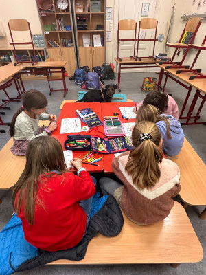 Am Standort Rommersdorf haben wir mit einem Projekttag den Weltkindertag nachgefeiert. Die Kinder durften frei entscheiden, welche Projekte sie umsetzen wollten: ein Schulshirt gestalten, die Wand der großen Treppe bemalen, einen Sonnenfänger basteln, Mutmachsteine gestalten, den Schulplaner verschönern, Fingerhäkeln ausprobieren, den Bewegungsparcours in der Turnhalle absolvieren oder im Ruheraum entspannen. Bei der vielfältigen Auswahl konnte jedes Kind etwas finden, an dem es Freude hatte und durfte erfahren: Ich bin wertvoll!