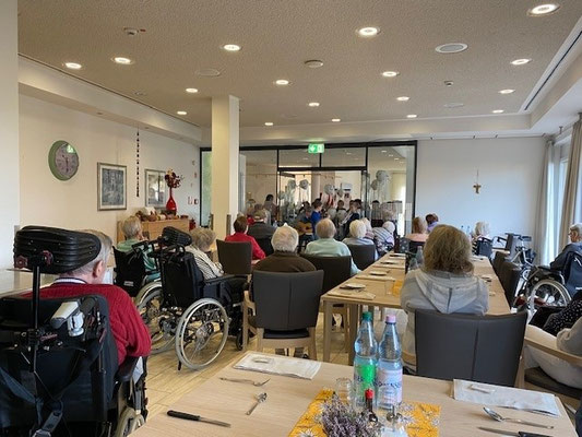 Mitte November besuchte die Klasse 4b das Seniorenheim Marienhof zum Martinsfest. Die Senioren freuten sich über die jungen Besucher, die schönen Laternen, den Gesang und das Trompetenvorspiel. Bei den alten Martinsliedern sangen einige Heimbewohner gerne mit. Zum Weihnachtsfest des Seniorenheims ist ein weiterer Besuch geplant.